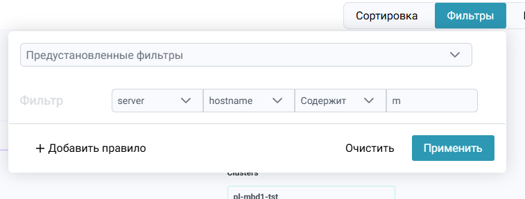 • Нажмите кнопку Очистить, чтобы удалить фильтры, добавленные вручную.