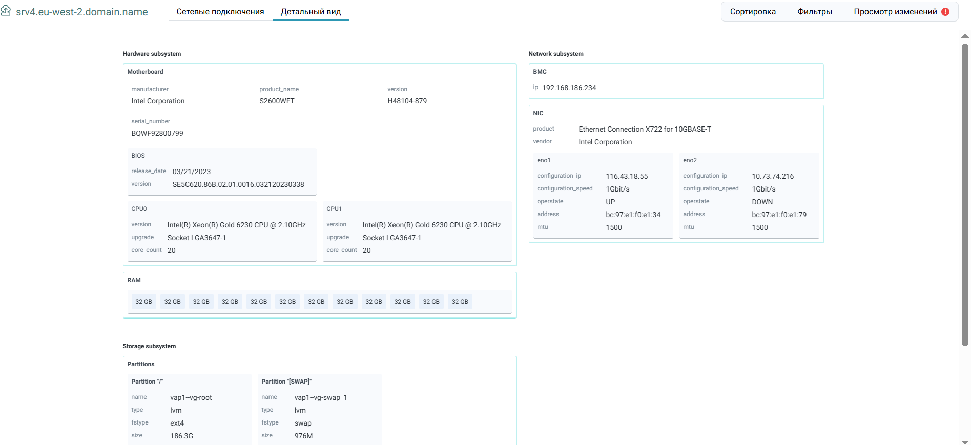 Для перехода на экран Детальный вид нажмите на имя сервера на одном из экранов топологии, где отображаются серверы.