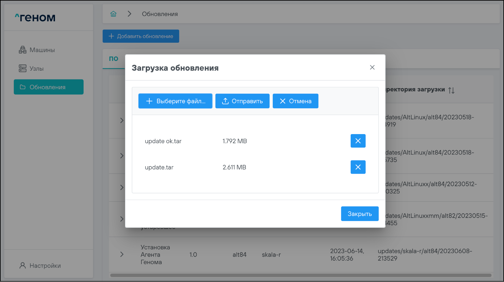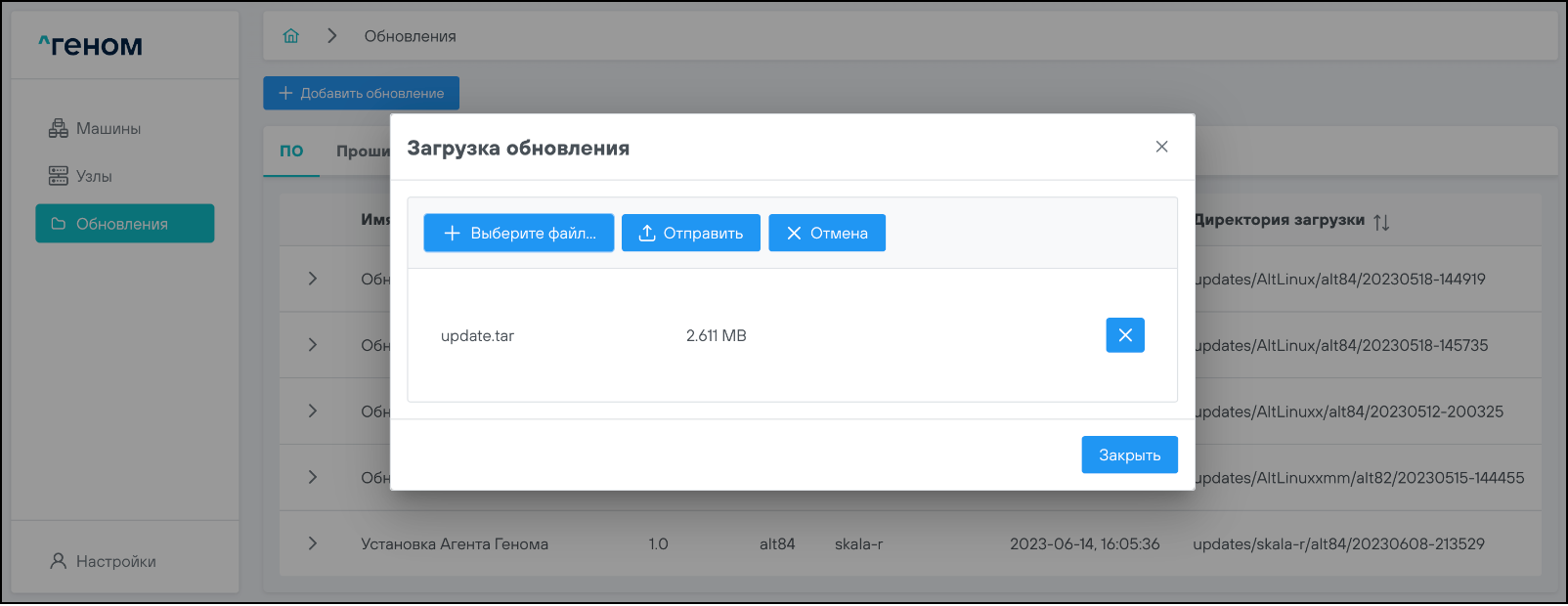 • установка загруженных из ПО «Скала^р Геном» обновлений;