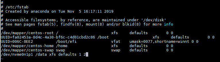 # mount -o noatime,nobarrier /dev/nvme0n1 /data