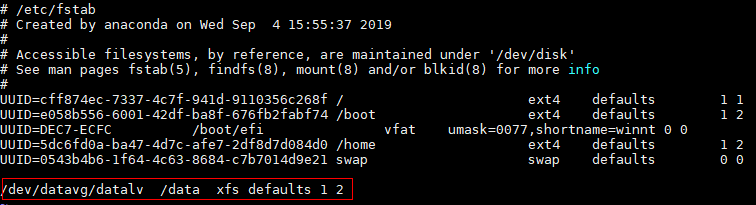 # mkdir /data#mount /dev/datavg/datalv /data -
