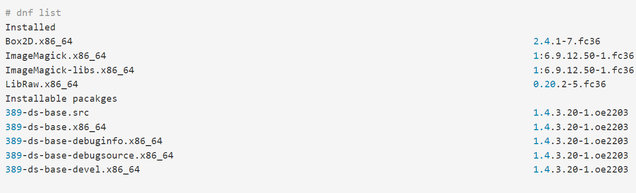 Вы можете выполнить команду list, чтобы просмотреть программные пакеты, установленные в системе, и программные пакеты в настроенном репозитории.