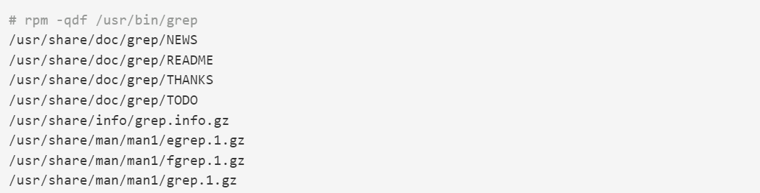 Чтобы запросить пакет RPM, предоставляющего определенный двоичный файл в Linux, используйте параметр -qf в команде rpm.