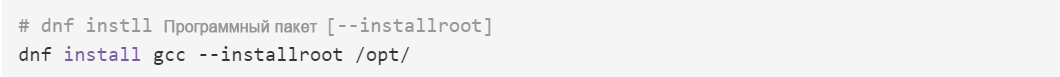 При использовании dnf для установки программного пакета, добавьте параметр –installroot, чтобы задать корневой каталог для установки программного пакета.