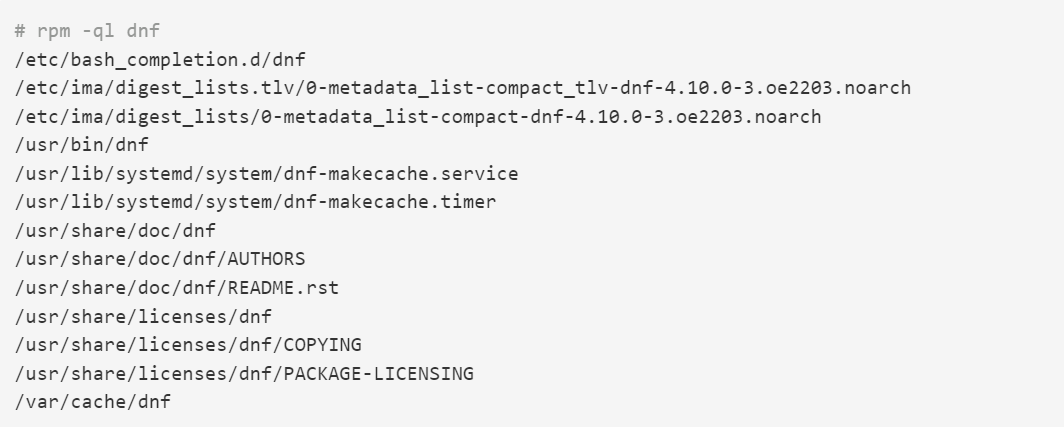 Чтобы запросить пакет RPM (dnf), установленный в системе Linux, используйте параметр -q в команде rpm.