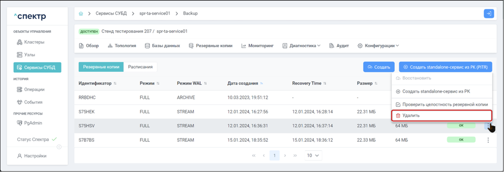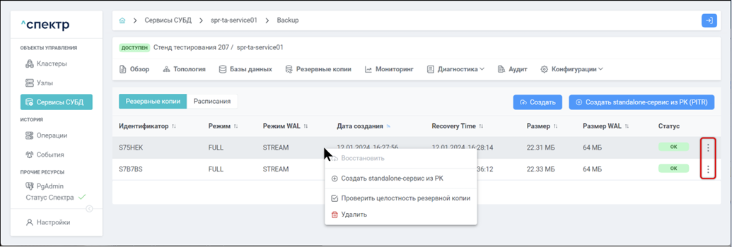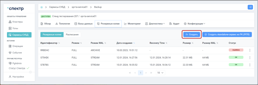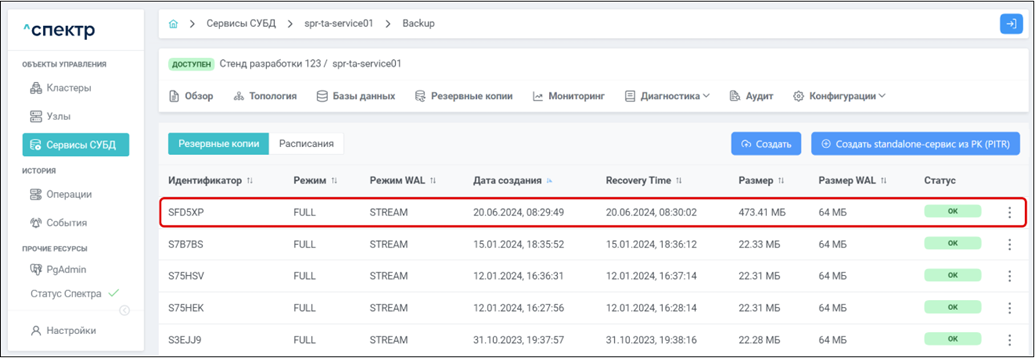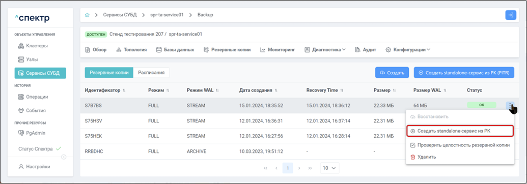 Резервная копия Бинарная копия файлов экземпляра СУБД (экземпляра сервиса), включающая в себя пользовательские данные, файлы конфигураций и журналы предзаписи.