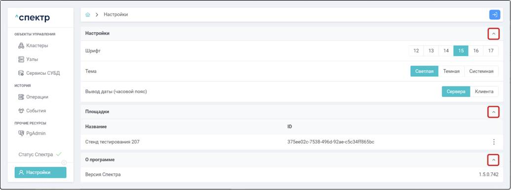1. Для раскрытия / скрытия списка параметров конфигурации нужно нажать на элемент управления слева от наименования конфигурации: