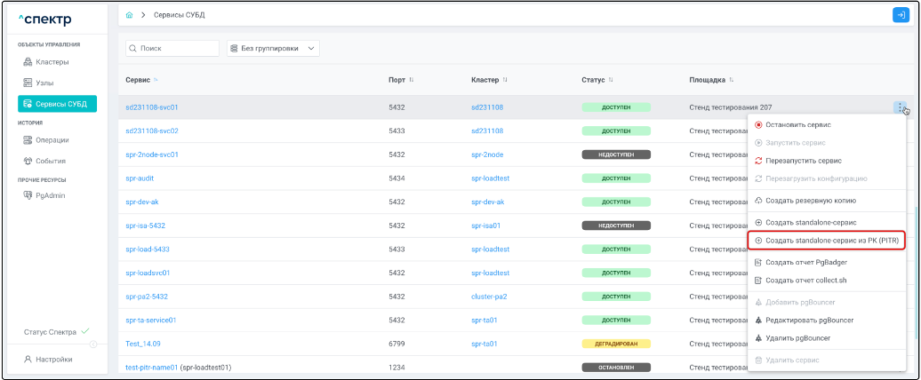 Standalone-сервис Одиночный экземпляр PostgreSQL, который не находится под управлением кластерного ПО, но запущен на одном из узлов МБД.П.