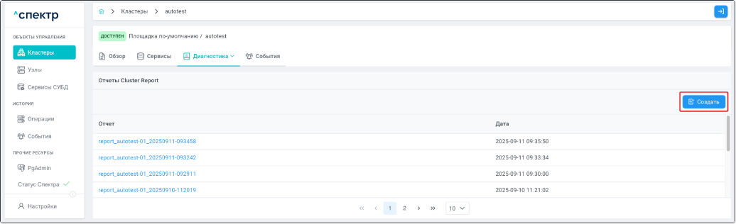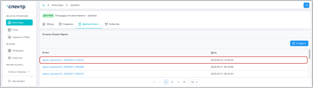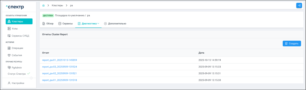 - создания отчётов Cluster Report;