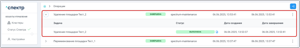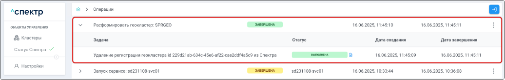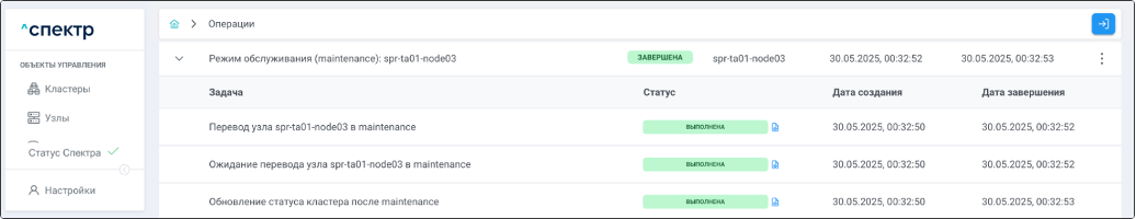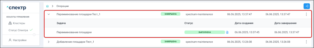 Для раскрытия / скрытия списка задач операции с актуальными статусами их выполнения нужно нажать на элемент управления