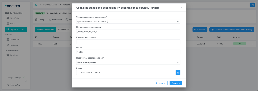 | PITR | Point-In-Time Recovery. Создание standalone-сервиса из резервной копии с указанием на конкретный момент времени, на который актуально восстанавливаемое состояние. |