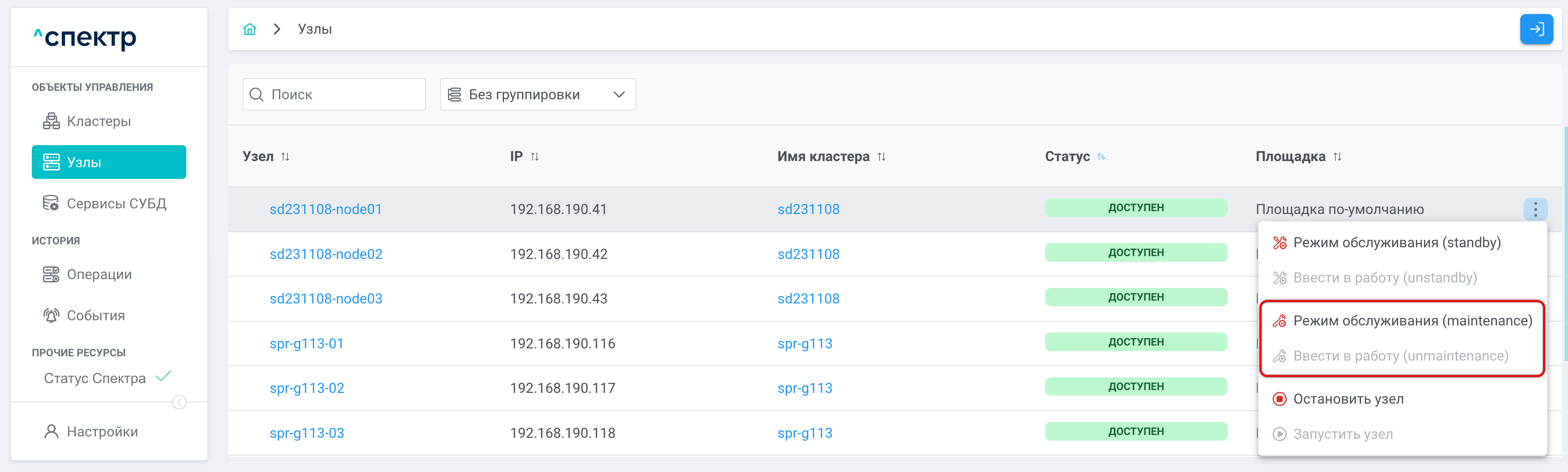 - Режим обслуживания (maintenance/unmaintenance) для узлов — гибкое управление техническим обслуживанием без влияния на работоспособность кластера.