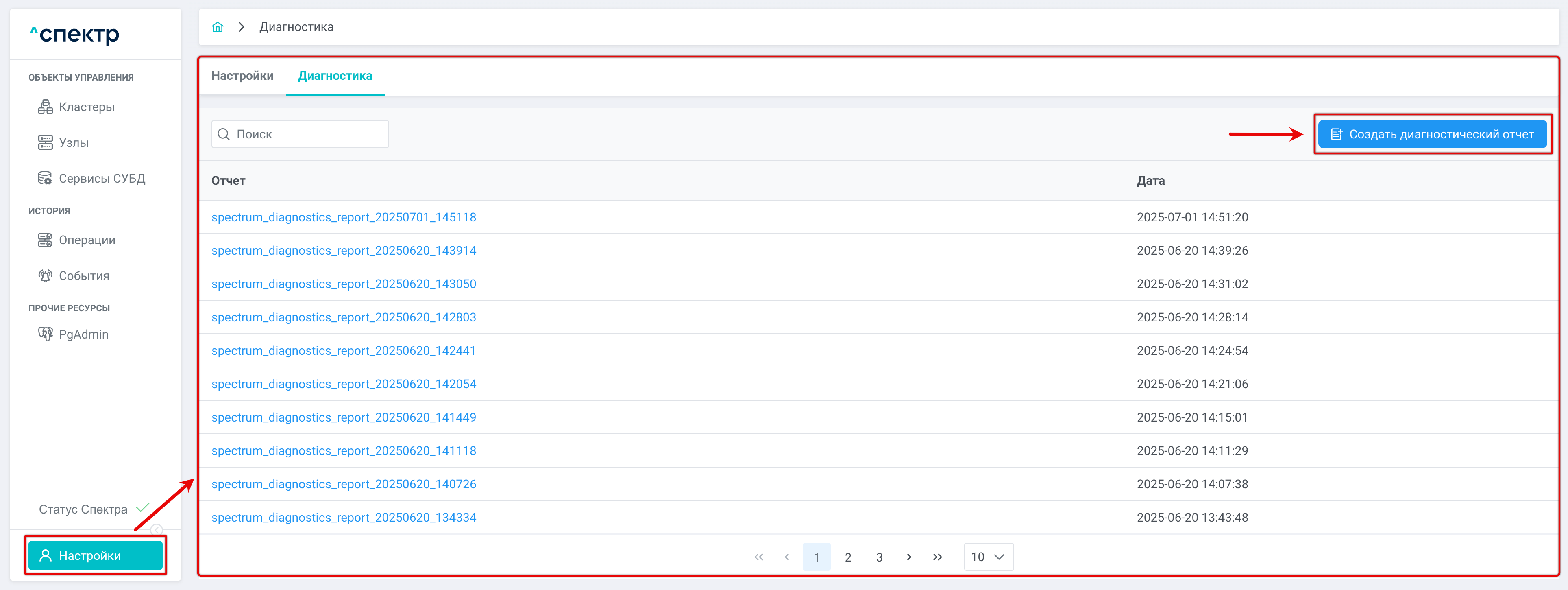 - Автоматический сбор диагностических отчетов — при возникновении неполадок или ошибок в “Спектре” автоматически формирует полный набор данных для обращения в техническую поддержку.