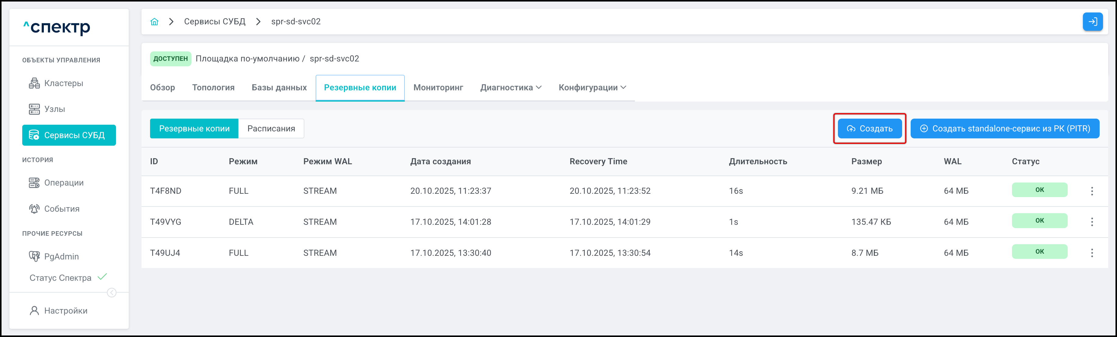 - Управление жизненным циклом кластеров СУБД PostgreSQL;