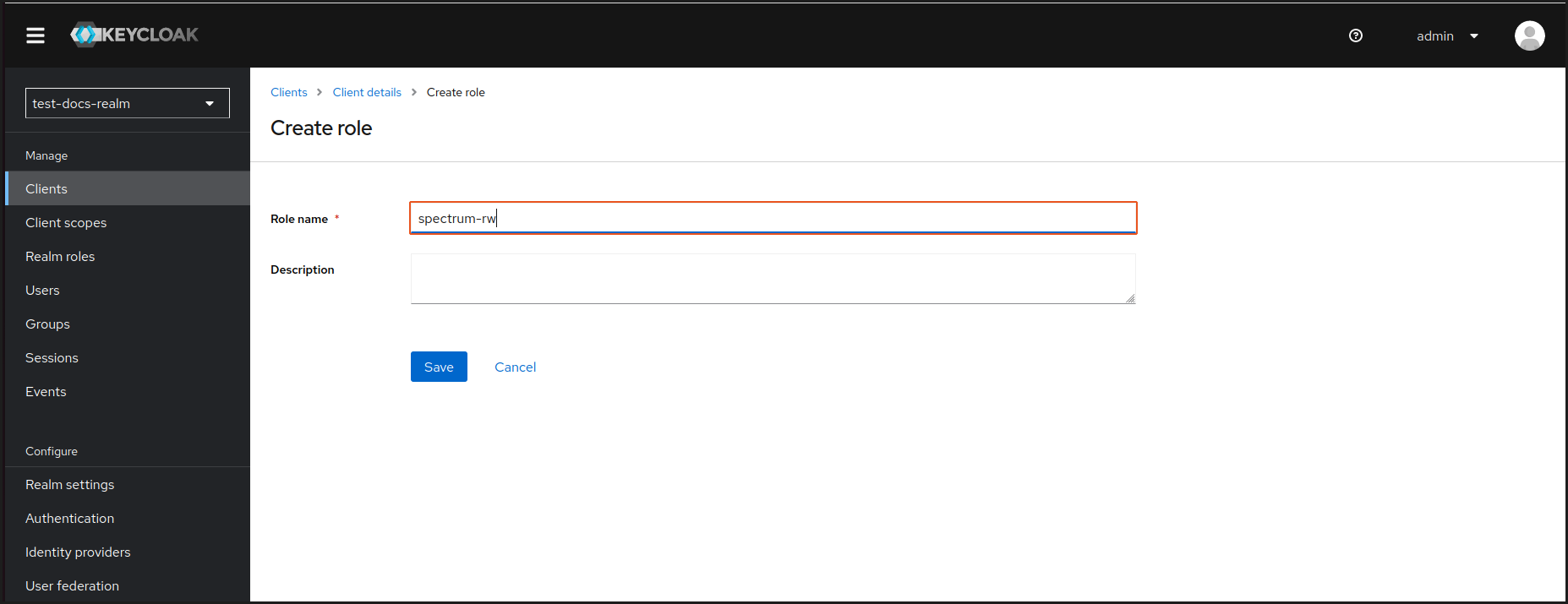 В примере, приведенном в данном руководстве, должны быть созданы две роли: “spectrum-ro” и “spectrum-rw”.