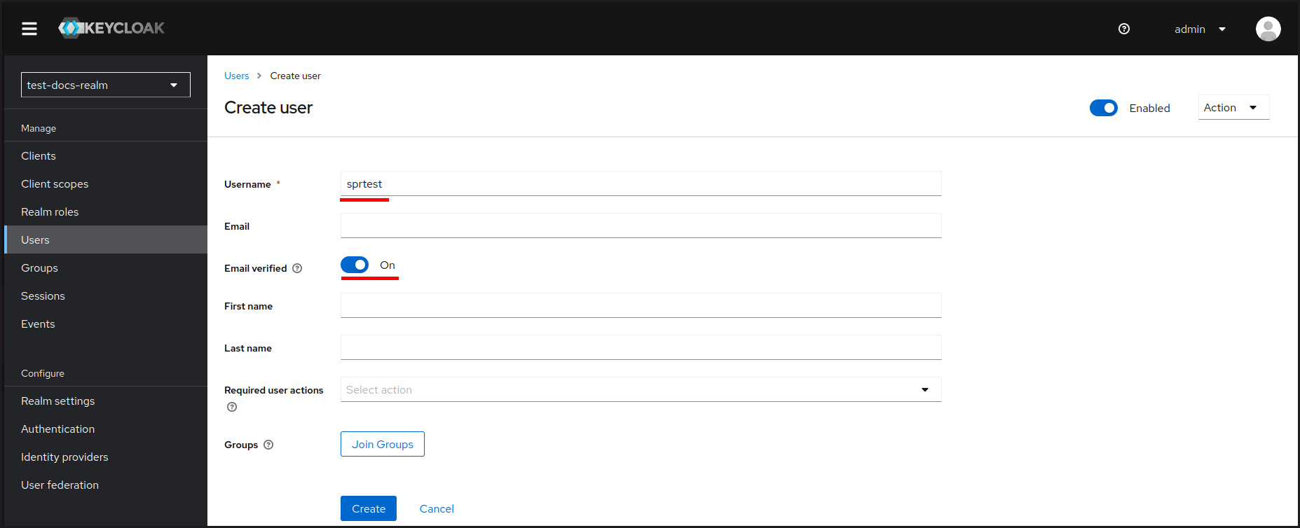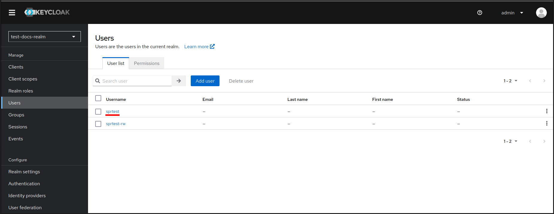 В примере, приведенном в данном руководстве, будет создано два пользователя: “sprtest” и “sprtest-rw”.