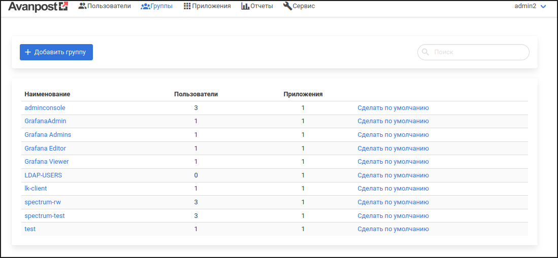 | Пользовательский интерфейс консоли администратора Avanpost может отличаться от приведенного в данном руководстве. |