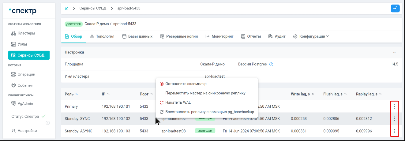 - Управление жизненным циклом кластеров СУБД PostgreSQL;