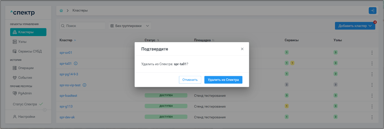 - удаления из Спектра;