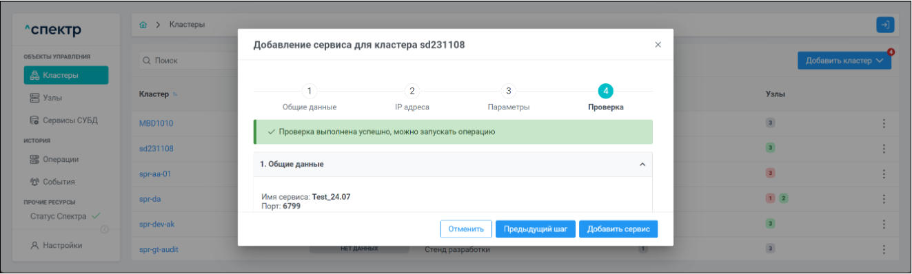 В правом верхнем углу страницы появится всплывающее сообщение о запуске операции изменения параметров pg_hba:
