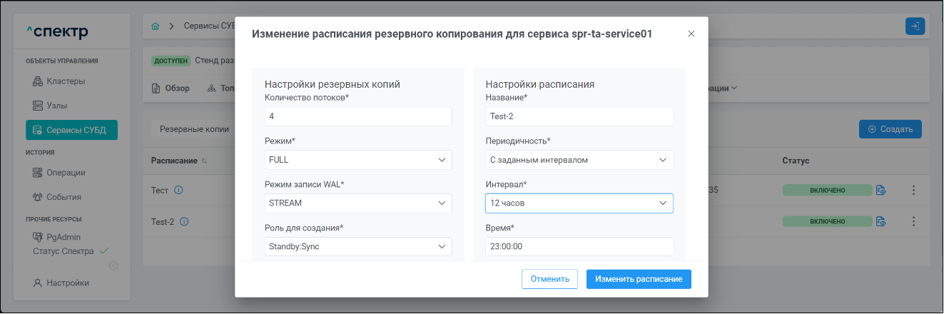 | Резервная копия | Бинарная копия файлов экземпляра СУБД (экземпляра сервиса), включающая в себя пользовательские данные, файлы конфигураций и журналы предзаписи. |