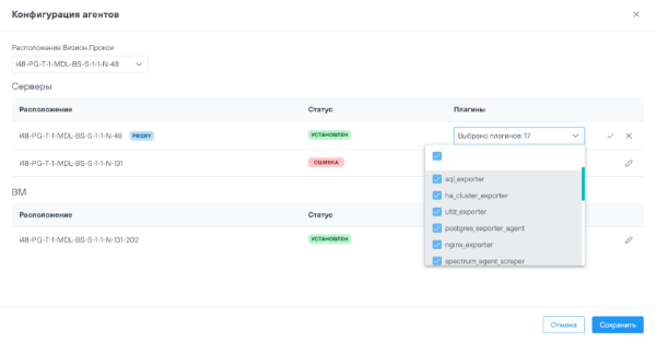 - Состояние компонентов, агентов и прокси