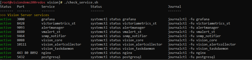 Скрипт для сбора диагностического дампа ./run.sh находится в дистрибутиве Визиона в папке /diagnostic.