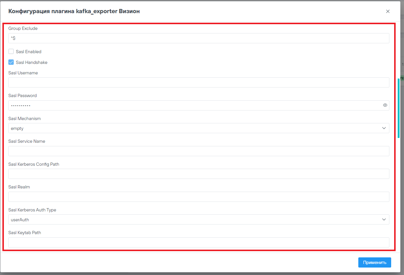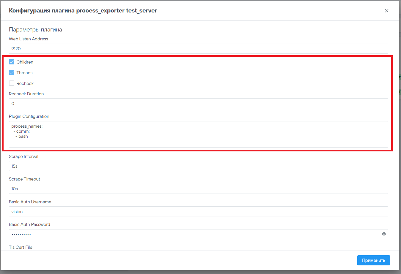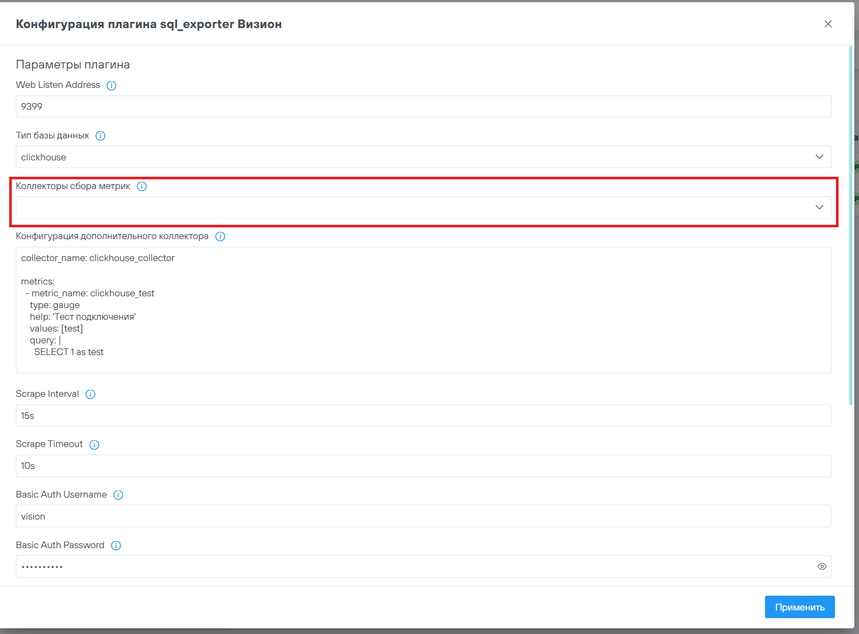 Для смены логина и пароля плагина необходимо изменить значения в полях Basic Auth Username и Basic Auth Password
