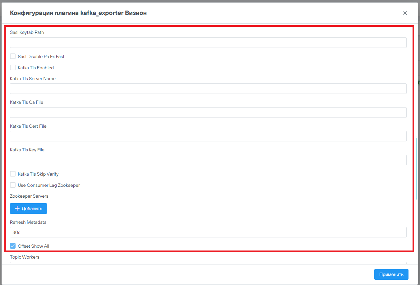 После внесения изменений необходимо нажать на кнопку “Применить”