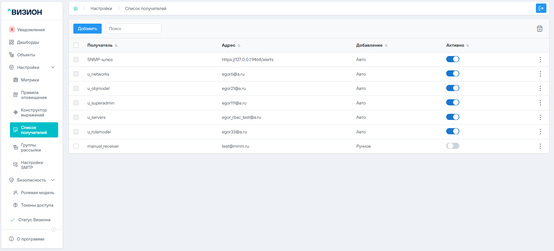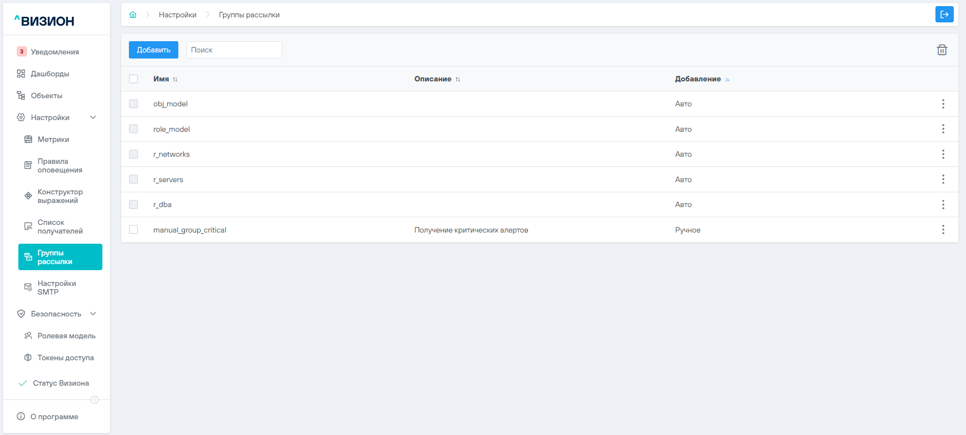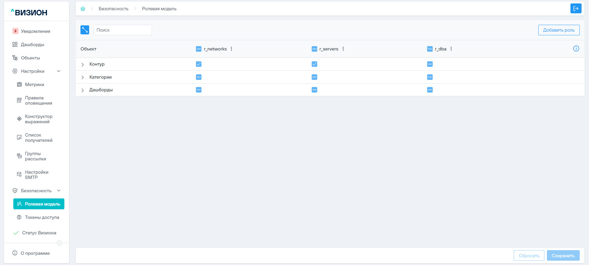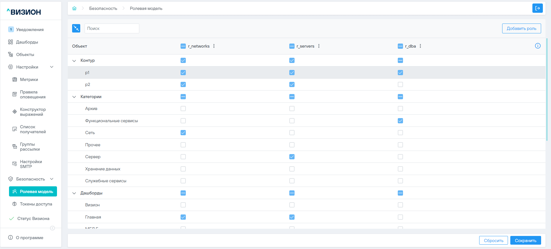 - Авторизоваться в ПО Визион под учётной записью с правами администратора мониторинга Визион.