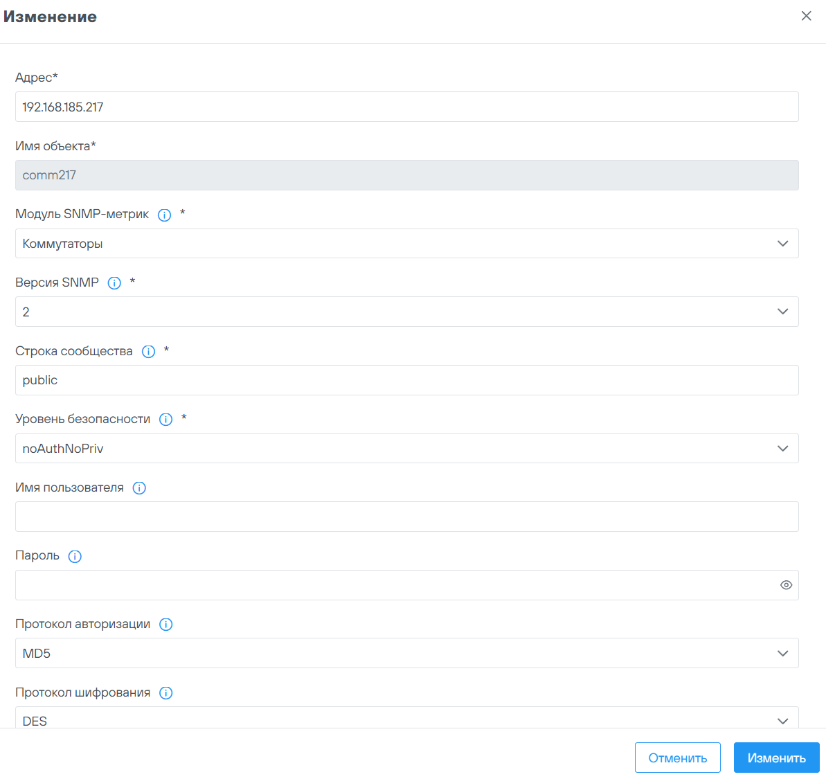 18.9 Смена пароля для snmp_notifier#