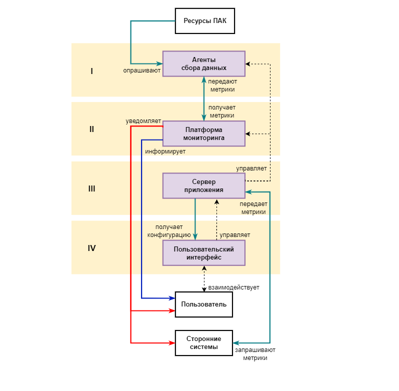 Платформа мониторинга - логический компонент, осуществляющий сбор, обработку, хранение и визуализацию информации, полученной от агентов, а также оповещение о выходе значений метрик за допустимые пределы;