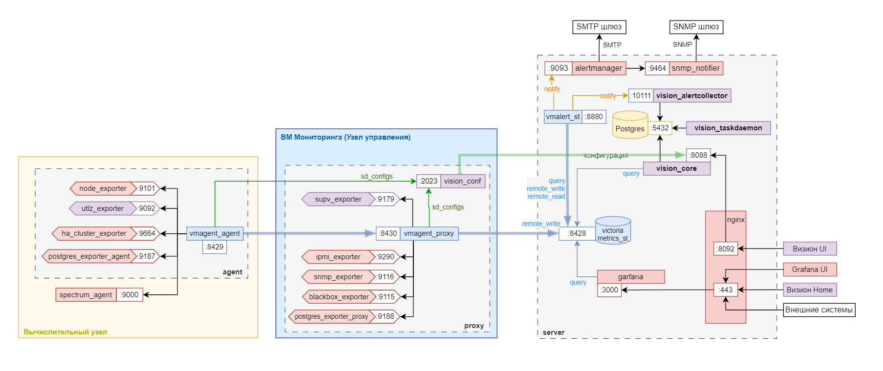 node_exporter 9101 /metrics Визион.Агент базовый агент для мониторинга узла