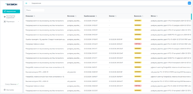 Раздел «Уведомления» содержит панель уведомлений мониторинга