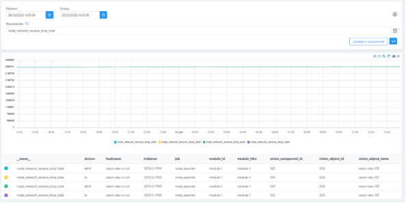 Раздел «Конструктор выражений» это инструмент для анализа метрики в графическом виде. Под графиком формируется таблица с описанием временных рядов: их ключи (метки) и значения