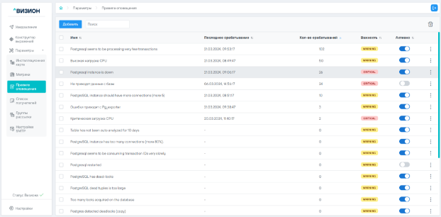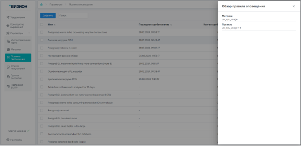 5.2 Работа с правилами оповещения