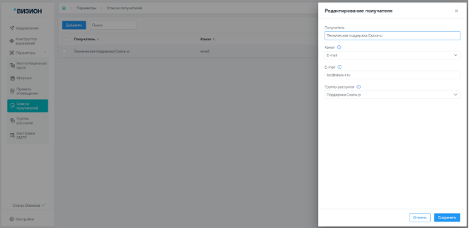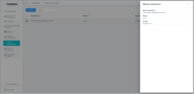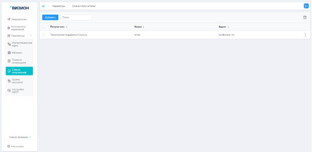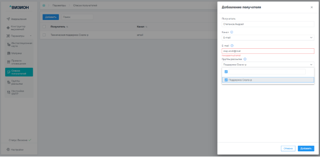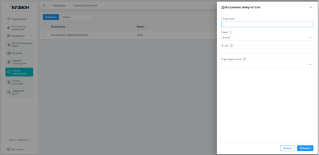 5.3.1 Добавление получателя уведомлений