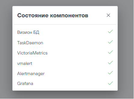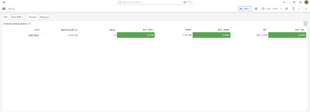 - Сбор данных, отображение, мониторинг элементов программного обеспечения, активных компонентов модулей ПАК, служебных сервисов и сервисов баз данных