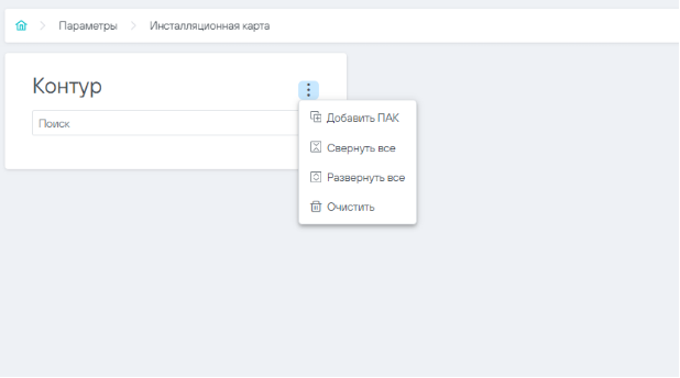 Для настройки элементов инсталляционной карты необходимо открыть раздел «Параметры» и открыть подраздел «Инсталляционная карта».