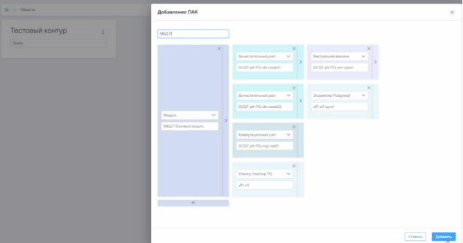 Заполняем форму «Добавление ПАК», выбираем необходимые модули, указываем корректные названия.