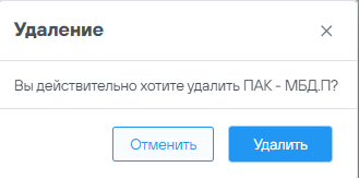 Для удаления ПАК необходимо нажать кнопку «Удалить» и подтвердить удаление в форме «Удаление»