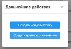 Добавленная пользовательская метрика появляется в списке метрик, после нажатия на кнопку «Добавить» появляется окно с предложением дальнейших действий.