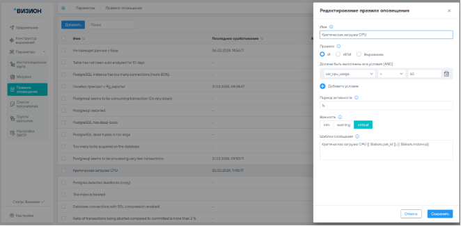 5.2.2.2 Редактирование правила оповещения