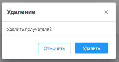 Для удаления получателя нужно нажать на пункт «Удалить», далее в открывшейся форме подтвердить удаление.