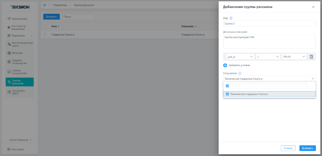 5.4.1 Добавление группы рассылки