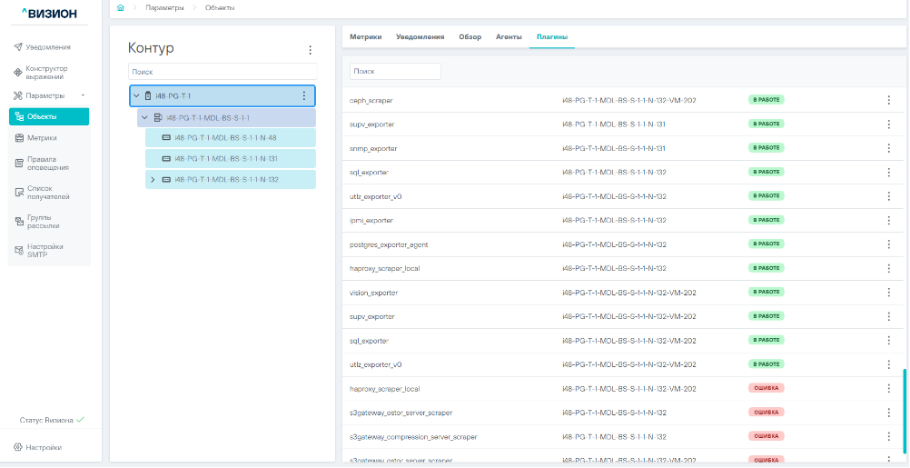 • Плагины – конфигурационные плагины агентов, настроенные на агентах.
