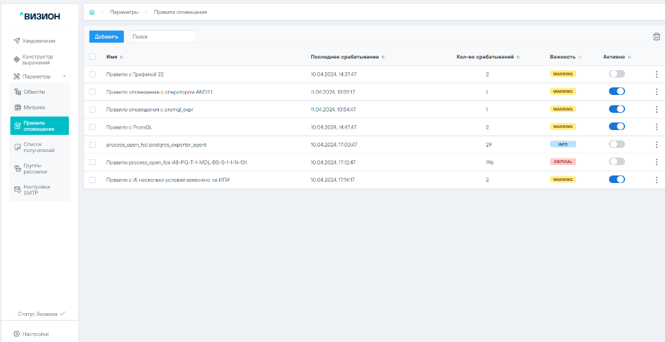 5.2 Работа с правилами оповещения#