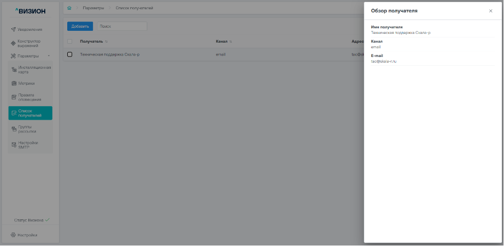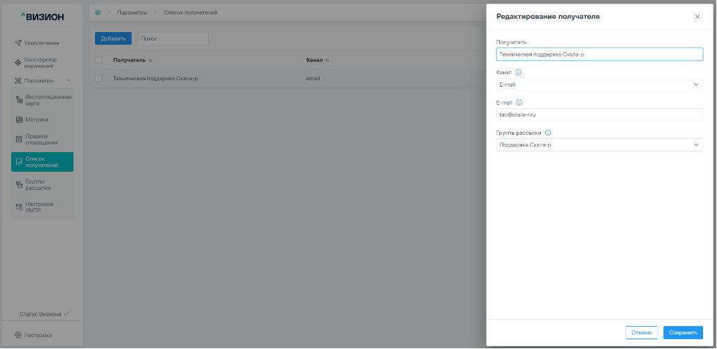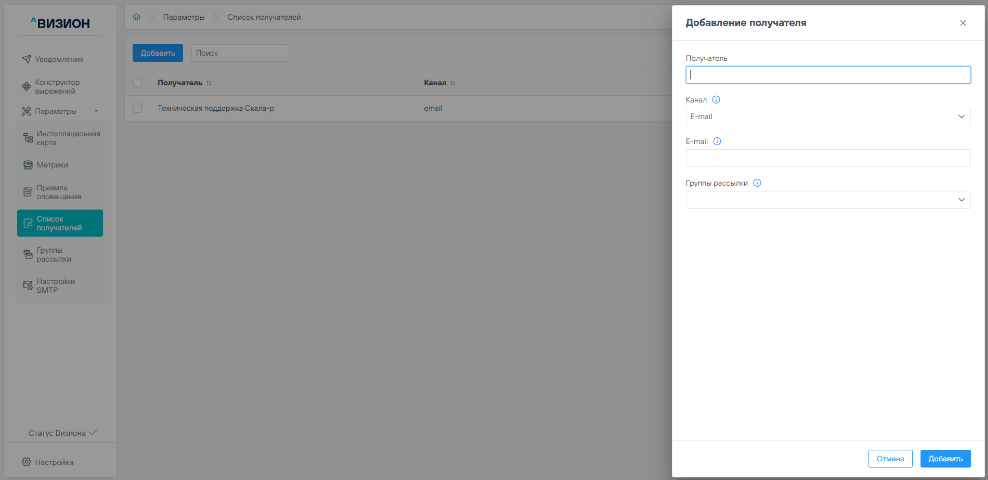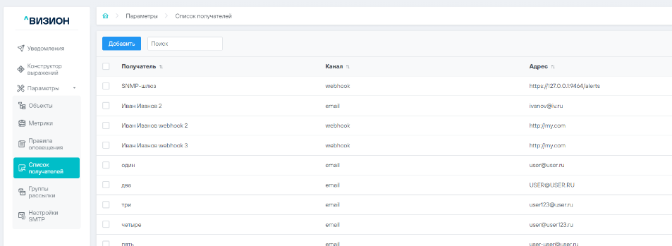 5.3.1 Добавление получателя уведомлений#