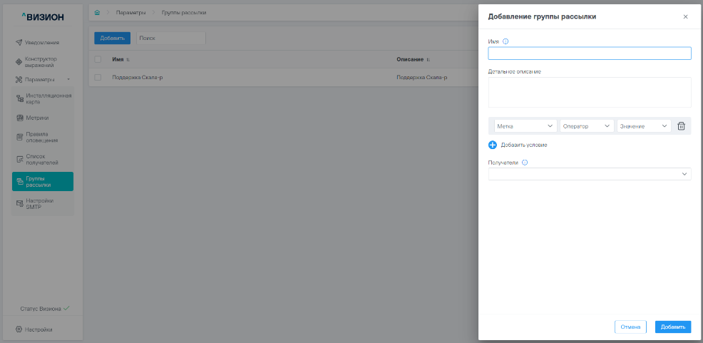 5.4.1 Добавление группы рассылки#