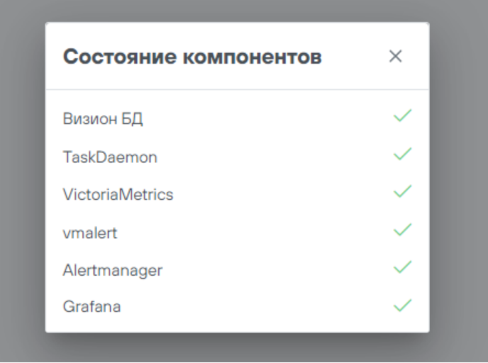 • Сбор данных, отображение, мониторинг элементов программного обеспечения, активных компонентов модулей ПАК, служебных сервисов и сервисов баз данных